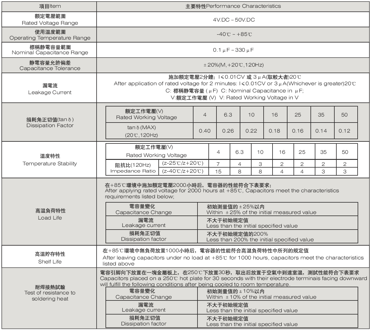 額定電壓: 4V~ 50V ;