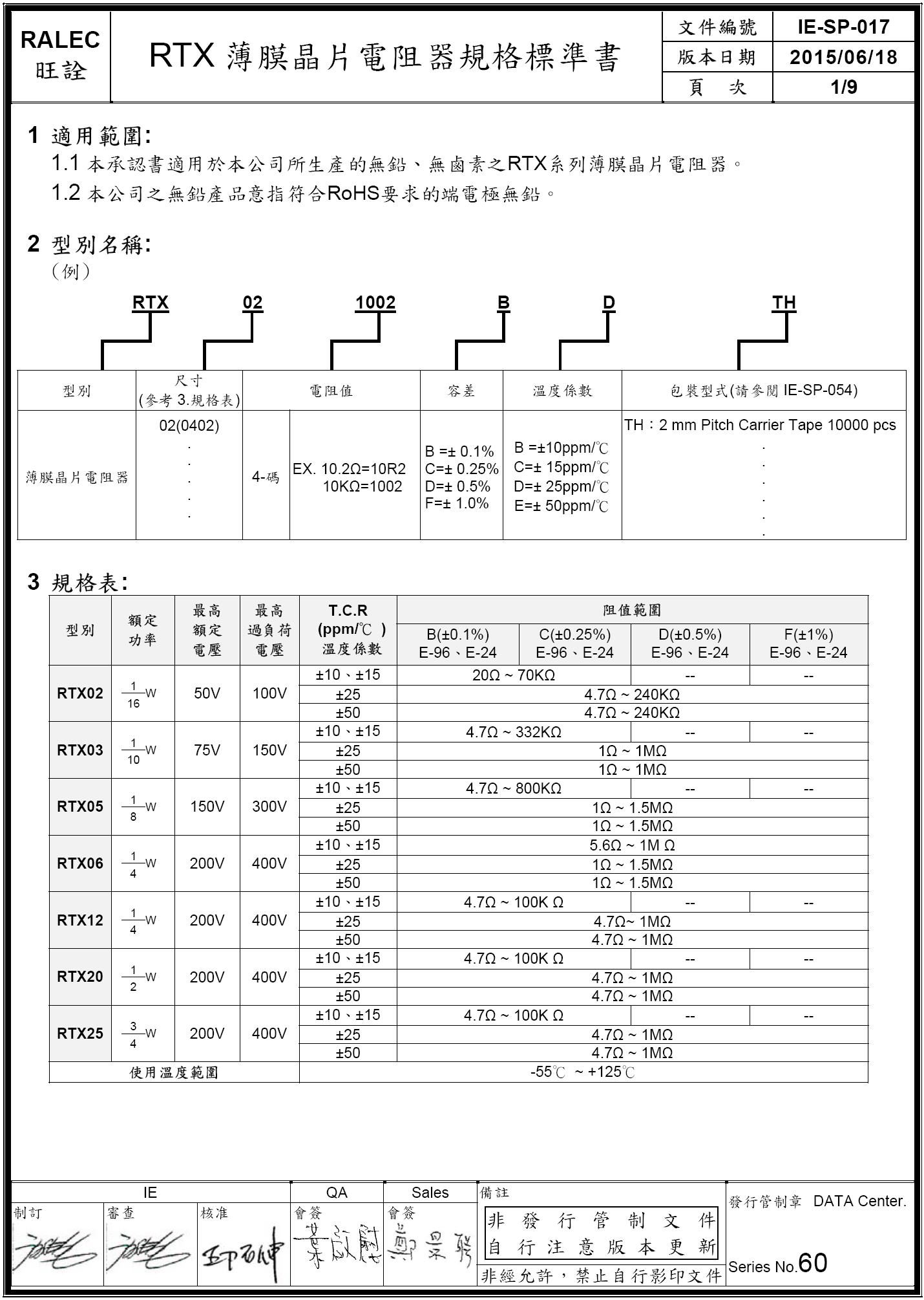 RTX貼片薄膜電阻