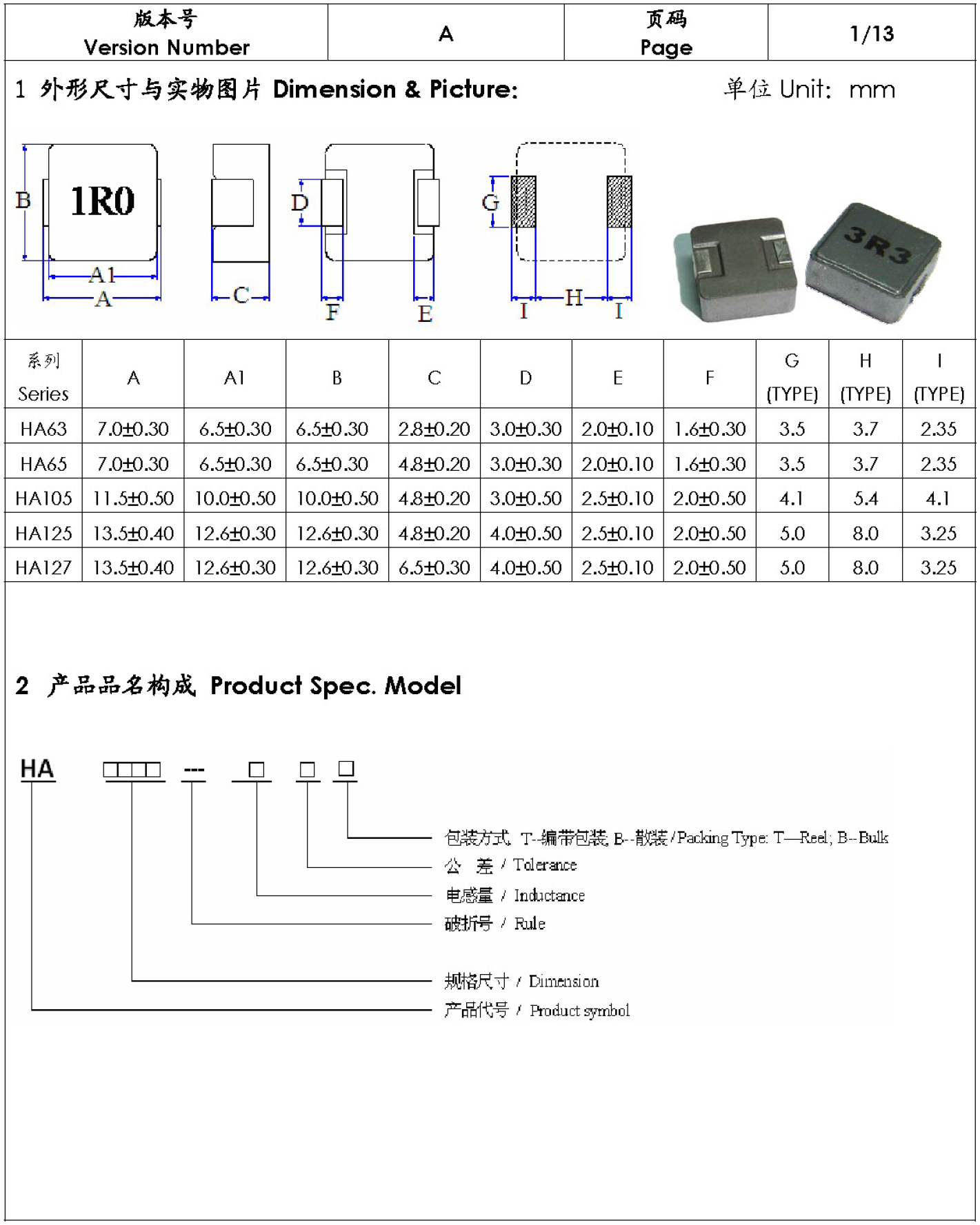 產(chǎn)品尺寸:HA63 HA65 HA105 HA125 HA127
