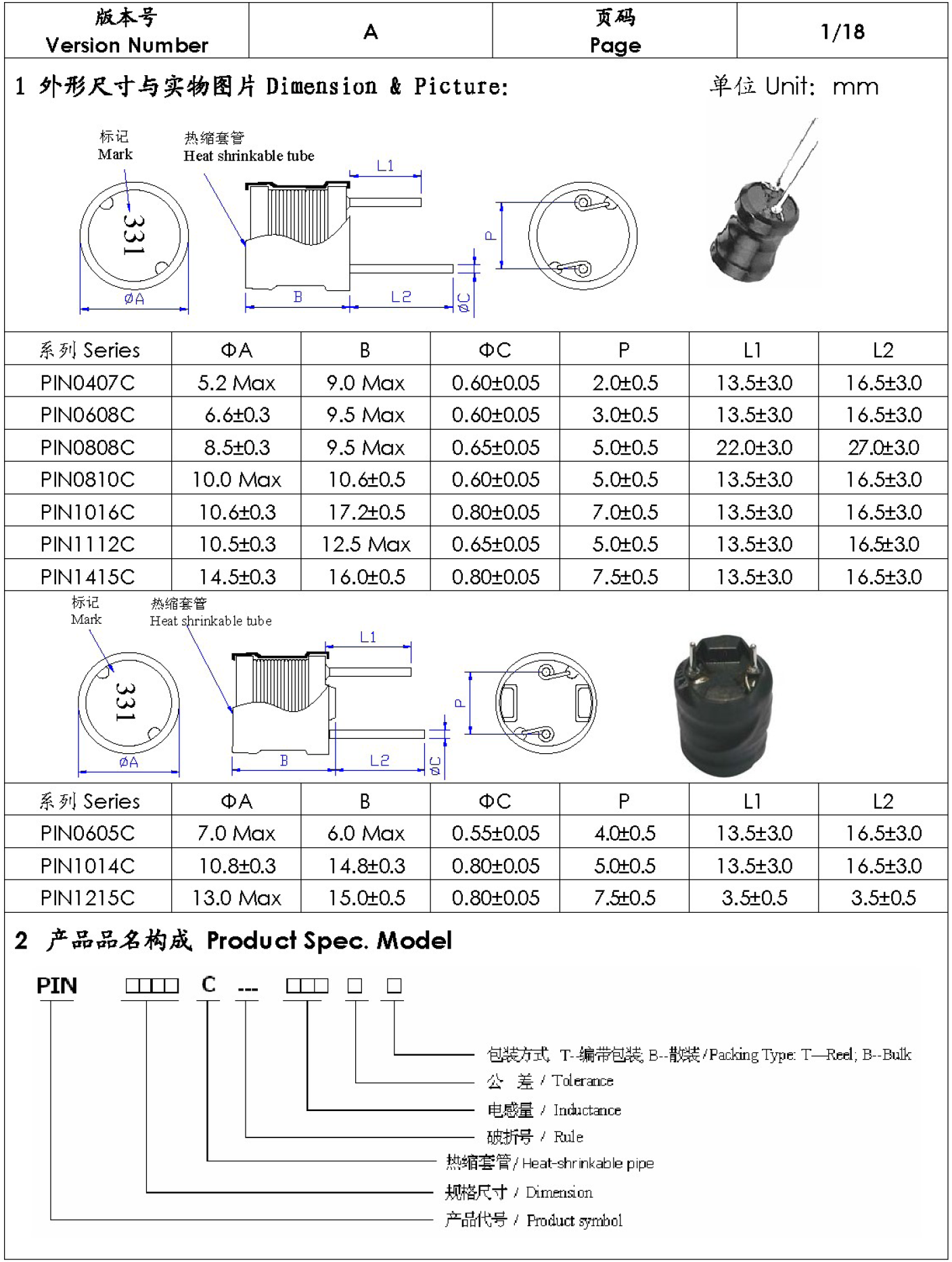 產(chǎn)品尺寸:PIN0407C PIN0608C PIN0808C PIN0810C PIN1016C PIN1112C PIN1415C
