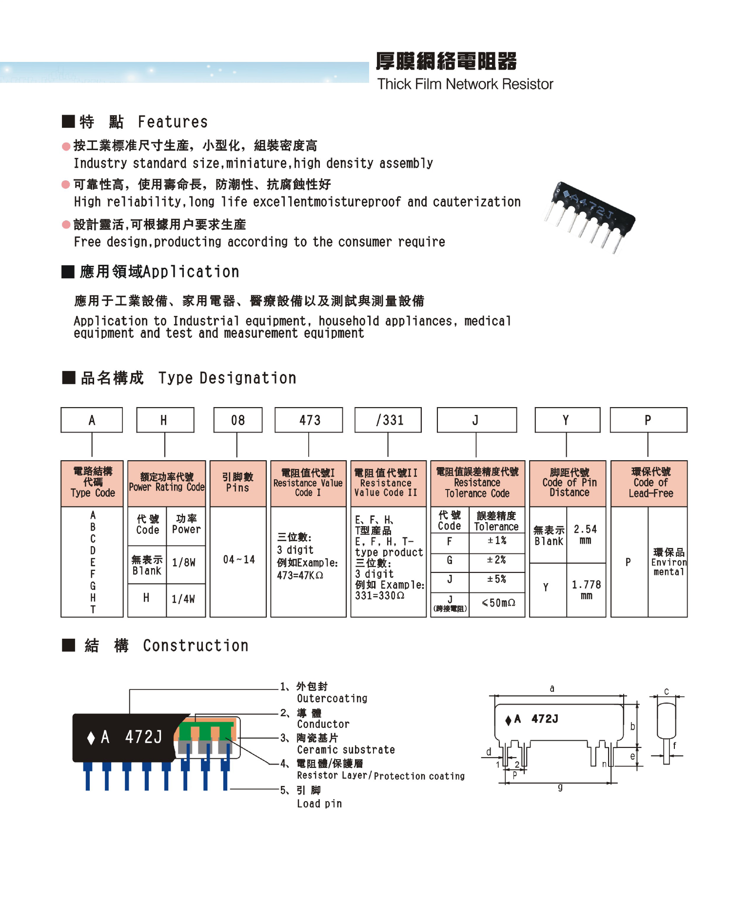 標準腳距:2.54mm 特殊腳距:1.778mm