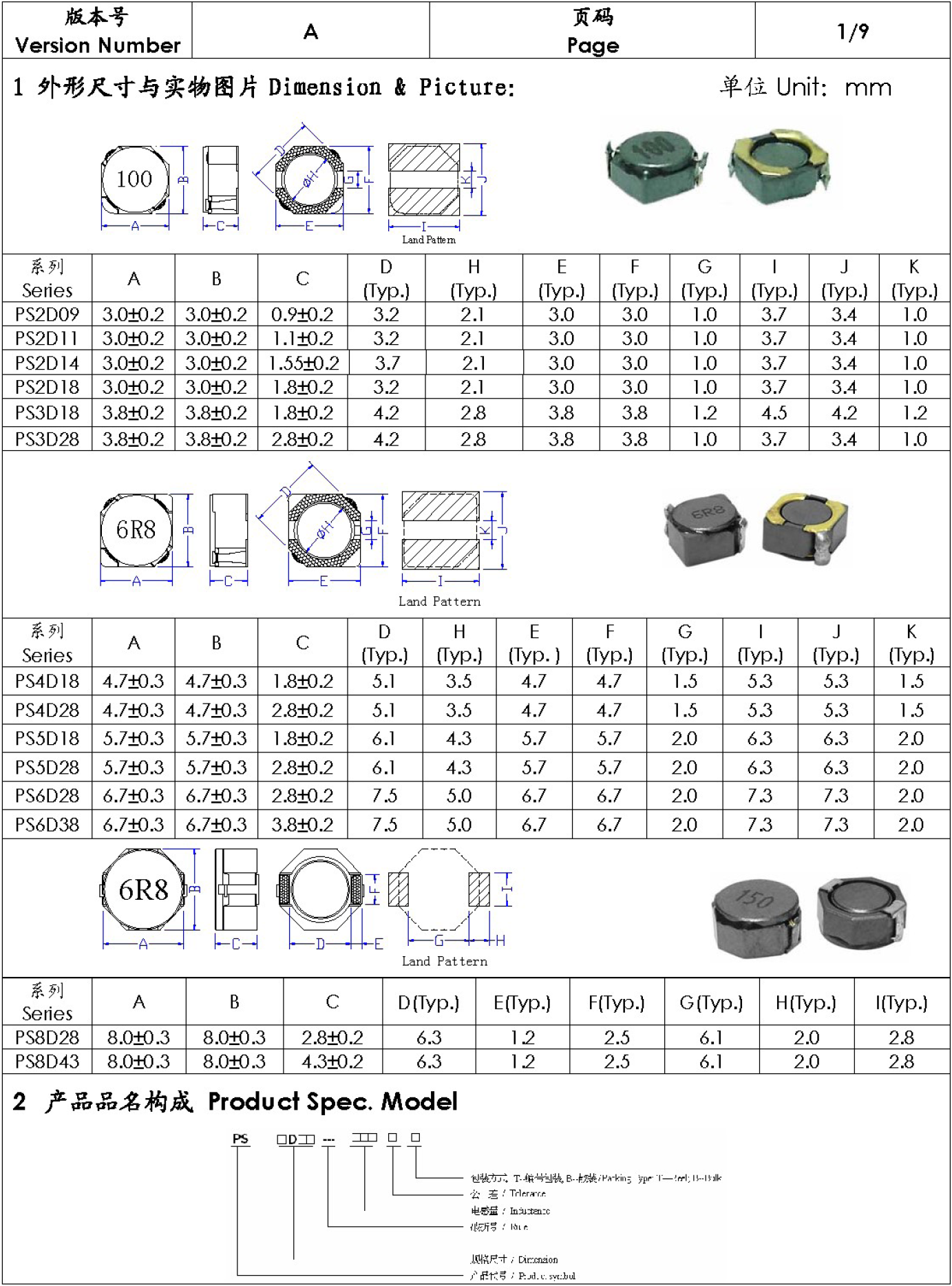 產(chǎn)品尺寸:PS2D09 PS2D11 PS2D14 PS2D18 PS3D18 PS3D28