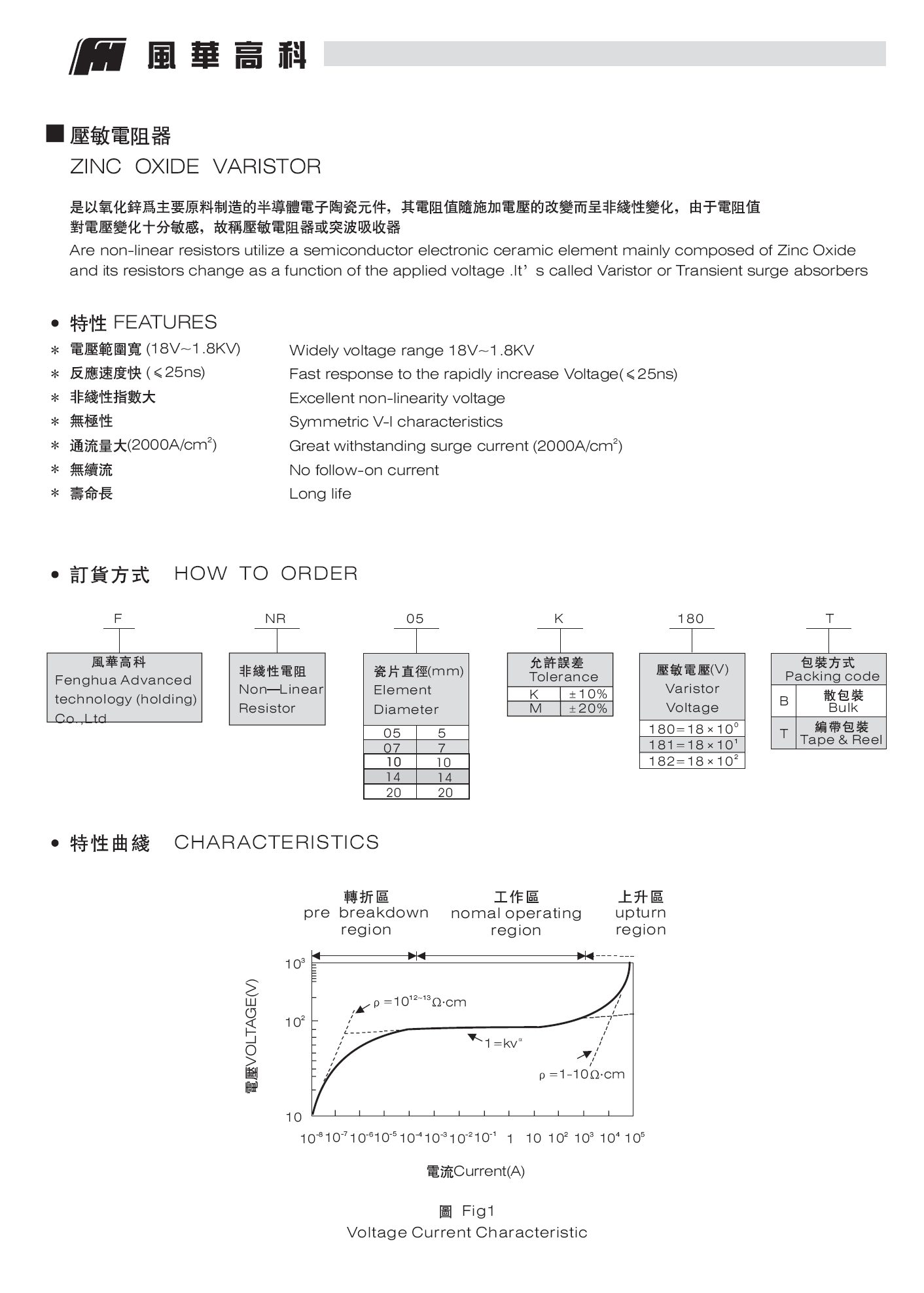 氧化鋅壓敏電阻器是以氧化鋅為主要材料制造的半導(dǎo)體無極性電子陶瓷元件。當(dāng)施加在壓敏電阻器兩端的電壓達(dá)到某一閥值時,壓敏電阻器的電阻值迅猛變小,從而在電子(電力)線路上起降壓作用,達(dá)到保護(hù)其它元器件的目的。