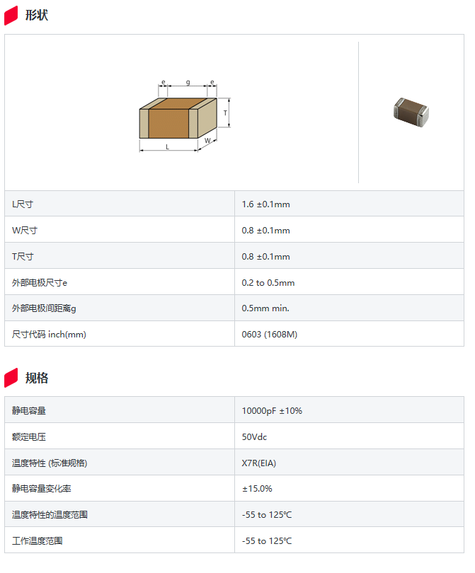村田GRM188R71H103KA01D貼片電容基本參數(shù):